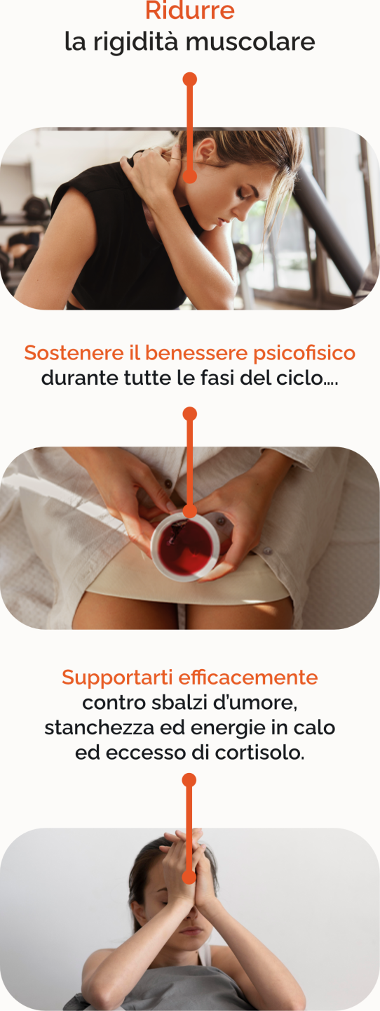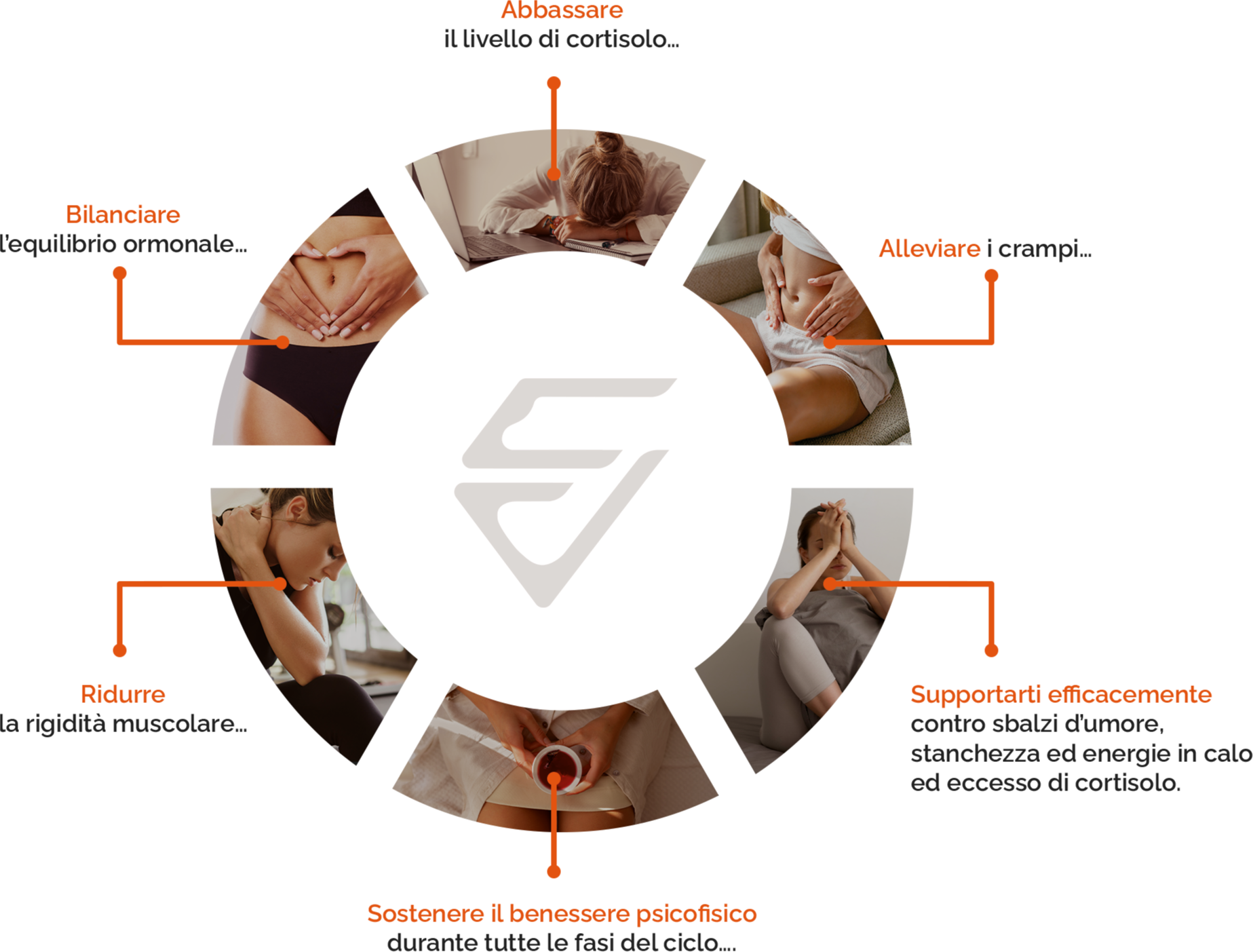 abbassa il cortisolo e ti dona, in ogni fase del ciclo, un reale controllo fisico ed emotivo sui tuoi sbalzi ormonali