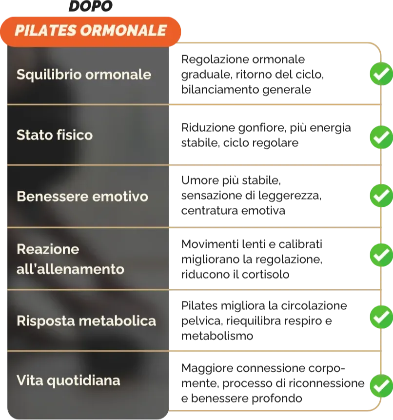 Nel Pilates Ormonale, esercizi e cicli di respirazione sono calibrati specificatamente per abbassare il cortisolo, quindi non solo per tonificare o rilassare.