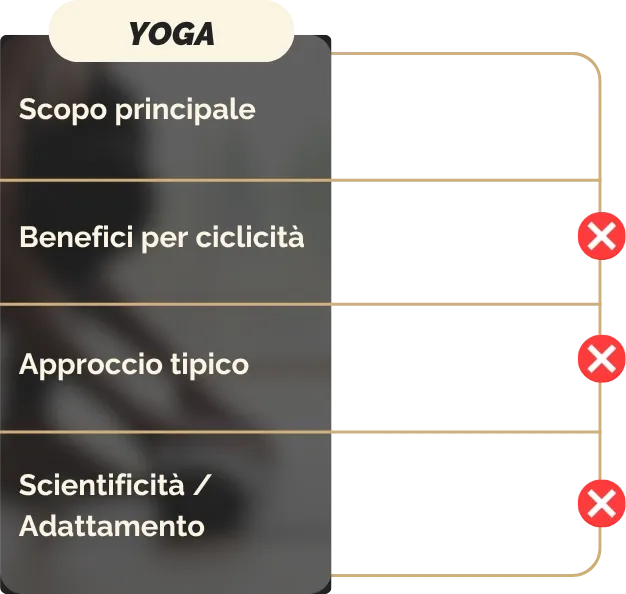 Perché lavora a fondo su core e postura, seguendo i tuoi cambiamenti mensili e trasformando l’energia del ciclo in equilibrio reale quotidiano.